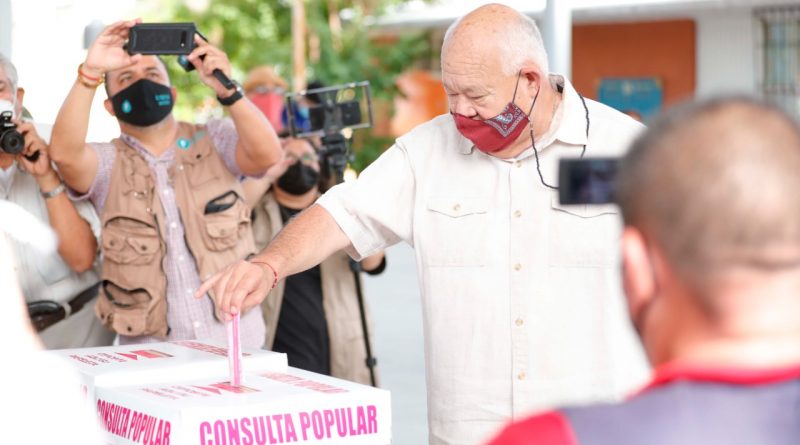 Emite gobernador electo de Baja California Sur, su voto en la Consulta Popular de este domingo
