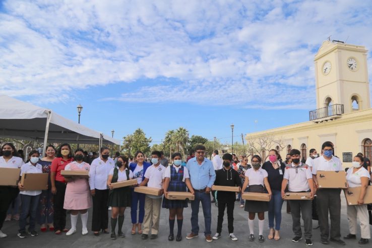 En su mensaje, el alcalde Oscar Leggs Castro enfatizó que la entrega de los equipos de cómputo fue en respuesta a la solicitud de las y los jóvenes estudiantes que acudieron a la 1ra Audiencia Juvenil en Cabo San Lucas el pasado 25 de mayo; es con estas acciones que el Gobierno de Los Cabos reafirma su compromiso con la juventud cabeña para que continúen saliendo adelante en sus estudios.