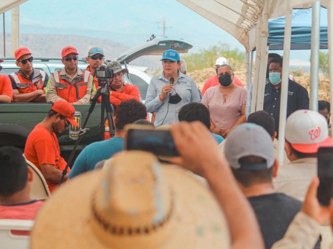 “Cuentan con mi mano y la de mi gobierno. Quiero decirles que no están solos, estoy a su lado como mulegina y como alcaldesa, y no solo yo, el cabildo y el ayuntamiento que presido también. Buscamos este acercamiento para reiterar que estamos a disposición para llegar a acuerdos, nos encontramos trabajando permanentemente para lograr mejores condiciones para ustedes, vamos hombro con hombro para nuestra gente que ha luchado y ha puesto en alto a la Minera y Metalúrgica El Boleo”, expresó la alcaldesa.