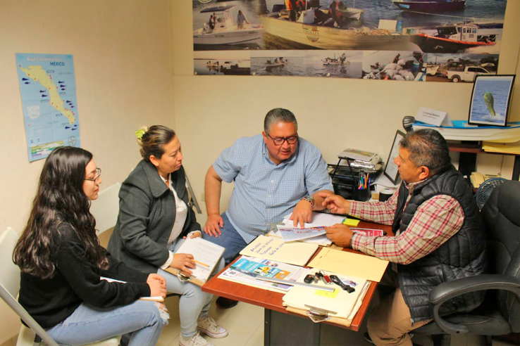 En reciente visita de trabajo, Martín Inzunza Tamayo, director general de Fonmar, se reunió con personal del Programa de Ordenamiento, Inspección y Vigilancia del Municipio de Comondú, el cual está a cargo de Fernando Romero Romero.