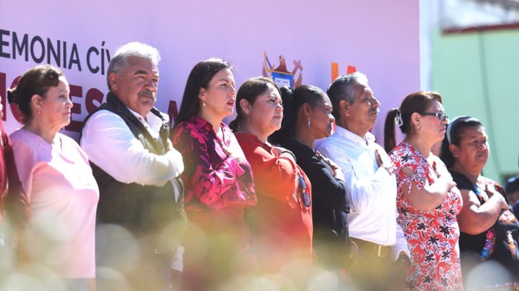 La Presidenta Municipal, Milena Quiroga Romero, encabezó el acto oficial de abanderamiento de la Delegación Municipal de Todos Santos, acto convocado por el H. XVII Ayuntamiento de La Paz, a través de la Dirección General de Inclusión y Diversidad, bajo la coordinación del Departamento de Acción Cívica de la Dirección Municipal de Cultura.