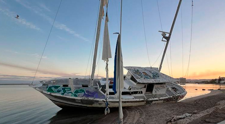 Cabe recordar que durante el paso del huracán “Norma” por La Paz, en octubre del 2023, muchas embarcaciones fueron arrojadas a la playa, otras se hundieron y algunas más quedaron sueltas por la bahía, y si bien hubo las que se rescataron por sus propietarios, en otras simplemente no aparecieron los dueños. (Por: Arturo Nieves).