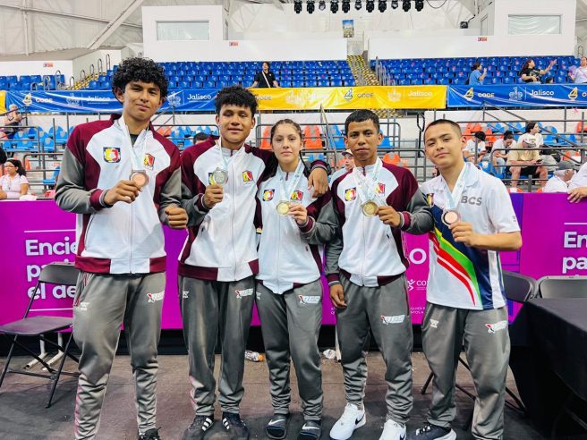 Con cinco medallas, dos de oro, una de plata y dos de bronce, cerró su participación la selección de Baja California Sur en los Nacionales CONADE en la ciudad de Guadalajara, Jalisco, lo que representó una efectividad del 62.5%, al asistir a la competencia con solo 8 peleadores, lo que confirma que se está haciendo un buen trabajo en los gimnasios por parte de los entrenadores, consideró José Antonio Salas Benavides.