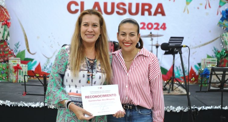 Quiroga Romero, estuvo acompañada por la Regidora, Amor Fenech Montaño; el Director General de Inclusión y Diversidad, Jehú Vázquez Savín y el Director de Cultura en La Paz, Juan Lara Guzmán, hizo entrega de reconocimientos a los destacados docentes Carmina Vera Minjares, Manuel Álvarez Santamarìa y Óscar Honori Patrón Flores, quienes con profesionalismo han contribuido a la formación inicial en las diversas disciplinas artísticas para niñas, niños y jóvenes, a lo largo de los 10 años de historia del recinto.