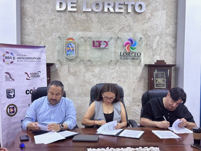 Por la parte oficial del H. XI Ayuntamiento de Loreto, correspondió a la alcaldesa Paz del Alma Ochoa Amador, el secretario general Juan Carlos Castañeda Davis y a la síndica municipal María Elena Villalejo Romero, llevar a cabo la firma de los convenios, destacando Paz Ochoa Amador, que con la firma se establecen las bases para que, tanto al sistema estatal anticorrupción como a la ciudadanía, se cumpla con la obligación de informar de manera transparente sobre el uso de los recursos y la actuación de los servidores públicos en los procedimientos de contratación y también, actos sancionatorios aplicados a funcionarios y particulares por incurrir en actos de corrupción.