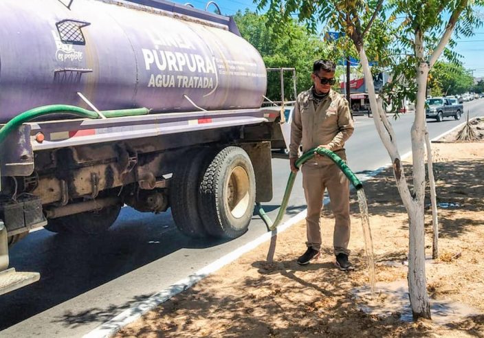 Destinan 250 mil litros de agua tratada para el riego y mantenimiento de espacios públicos