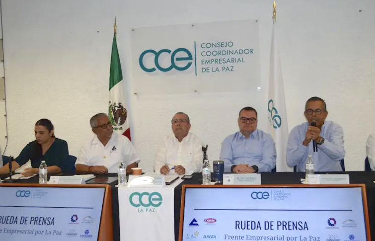 Este Frente Empresarial por La Paz y la Seguridad está conformado por la Cámara Nacional de Comercio (Canaco) de La Paz, Cámara de Restaurantes (Canirac), Empresas Hoteleras (Emprhotur), Cámara de la Construcción (CMIC), Transporte de Carga (Canacar), Industria de la Transformación (Canacintra), Desarrolladores de Vivienda (Canadevi), Confederación Patronal (Coparmex), Asociación de Profesionales Inmobiliarios (AMPI) y el mismo Consejo Coordinador Empresarial (CCE). (Por: Arturo Nieves).