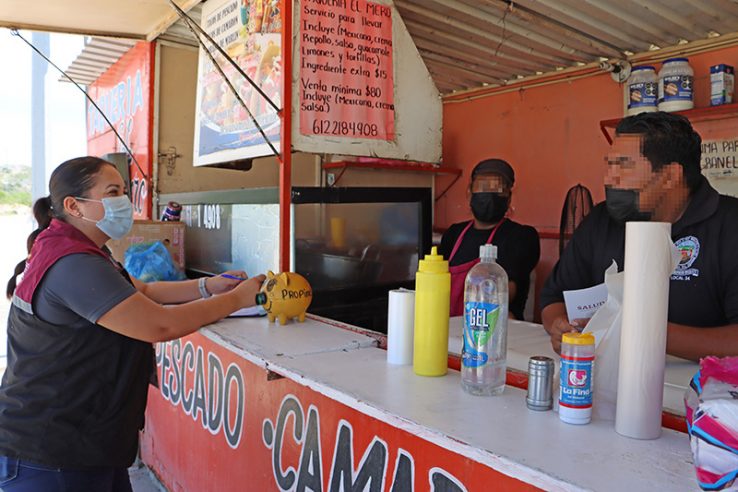 En este sentido, indicó que las y los verificadores de COEPRIS llevan a cabo recorridos por diversos puntos de estos municipios para hacer labores de fomento sanitario con los comerciantes dedicados a la venta de alimentos.