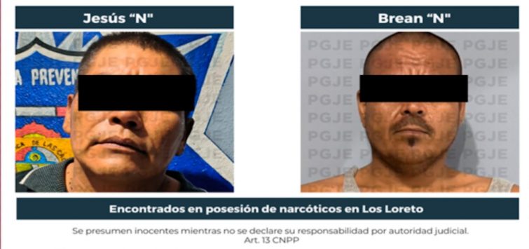 En acciones estratégicas para inhibir la distribución de narcóticos en Baja California Sur, agentes de investigación de la Procuraduría General de Justicia del Estado (PGJE) de Baja California Sur, aseguraron 794 dosis de narcóticos y a dos personas del sexo masculino identificados como Jesús “N” y Brean “N”, en operativo diversos, efectuados la madrugada del viernes 26, del mes en curso, en la ciudad de Loreto.