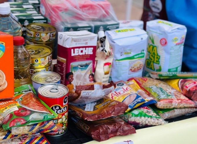 Productos no perecederos, artículos de limpieza e higiene personal, y agua embotellada.