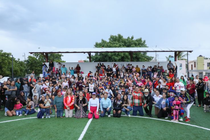 El ambiente estuvo marcado por risas, regalos, música y el show del Payaso Toy, creando un espacio de armonía que fortaleció los lazos comunitarios y se realizó en el campo de fútbol empastado que hace unos meses fue rehabilitado y entregado por la alcaldesa, como parte del programa de rescate de espacios públicos para el deporte y la convivencia familiar.