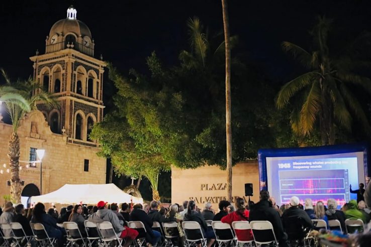 El evento realizado en la explanada de la plaza Salvatierra, reunió a cientos de familias, estudiantes, integrantes de la comunidad científica, organizaciones ambientalistas y público en general, interesados en conocer más sobre la vida del denominado “Gigante de los Mares” a través de la proyección al aire libre de este interesante material audiovisual.