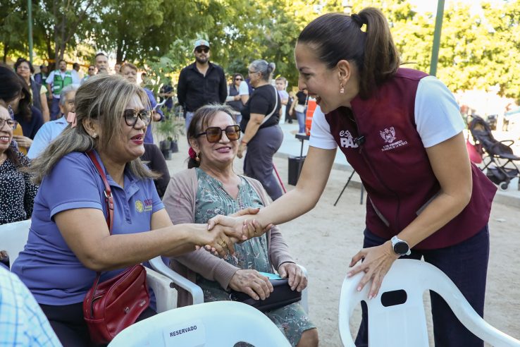 La presidenta municipal de La Paz, Milena Quiroga Romero, encabezó las audiencias públicas de Día del Pueblo en el parque del fraccionamiento Santa Mónica, donde habló de manera directa con vecinas y vecinos sobre sus principales necesidades y los avances de la administración municipal en servicios públicos, suministro de agua potable, movilidad y fortalecimiento de la seguridad.