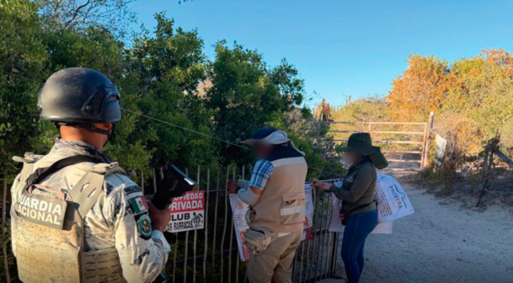 Con apoyo de elementos de la Guardia Nacional, verificó denuncias ciudadanas relacionadas con afectaciones en la zona costera del municipio de Los Cabos, dentro y en las inmediaciones del polígono del Área Natural Protegida. Durante los recorridos se identificaron ocho sitios, en los que se practicaron igual número de inspecciones.