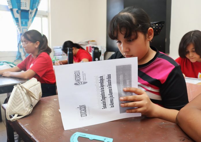Asimismo, explicó que los aprendizajes como parte de la Nueva Escuela Mexicana tienen como propósito valorar de manera integral y contextualizada los aprendizajes del alumnado. Para ello, se seleccionó una muestra representativa de escuelas, cuyos exámenes fueron enviados a la Dirección de Aprovechamiento para su revisión y posteriormente devueltos a cada plantel para su análisis y retroalimentación.