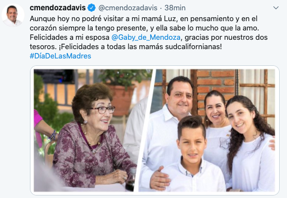 El primero de ellos fue el gobernador del estado Carlos Mendoza Davis, quien felicito a su mama, esposa y a todas las mamás sudcalifornianas, a través de sus redes sociales.