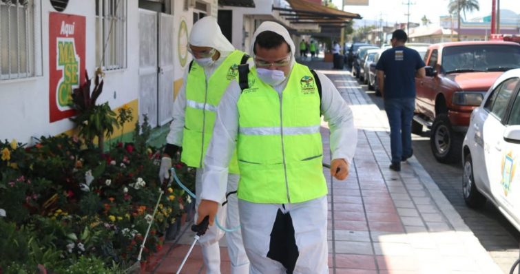 Este programa inició sanitizando las paradas de camiones, parques, centros comerciales, comenzando desde Camino Real hasta la Plaza Forjadores.