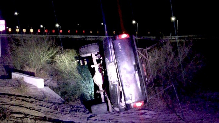 Al arribar al lugar antes mencionado, los elementos policiacos encontraron un vehículo Ford F-150 de color negro volcado sobre su costado derecho con las luces encendidas.