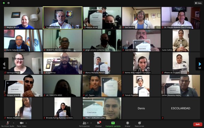 La Paz, Baja California Sur.- En un acto virtual, la Secretaría de Turismo, Economía y Sustentabilidad (Setues) y la Universidad Autónoma de Baja California Sur (UABCS), hicieron entrega a 14 integrantes de la Policía Turística de La Paz y Los Cabos su acreditación en el idioma inglés, como parte de un proyecto piloto en el país que ambas instituciones llevan a cabo en conjunto con el Consulado General de los Estados Unidos en Tijuana.