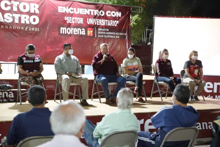 La Paz, Baja California Sur.- Con pleno respeto a su autonomía, y hacer que se respete, el gobierno estatal de la Cuarta Transformación sumará esfuerzos y recursos para fortalecer la matrícula estudiantil de la Universidad Autónoma de Baja California Sur y mantener el orgullo que sentimos lo sudcalifornianos por nuestra máxima casa de estudios, se comprometió el candidato a la gubernatura por la Coalición Morena-Partido del Trabajo “Juntos haremos historia”, Víctor Castro Cosío.
