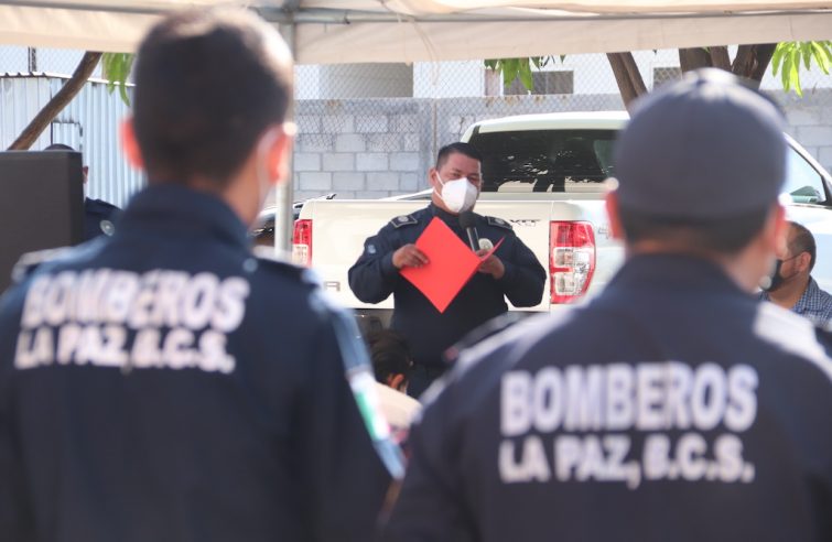 La Paz, Baja California Sur.- En el marco del 62 aniversario del Heroico Cuerpo de Bomberos de la ciudad de La Paz, el Patronato de Bomberos dono un Camión Bombera Escalera y uniformes para los bomberos activos y voluntarios.